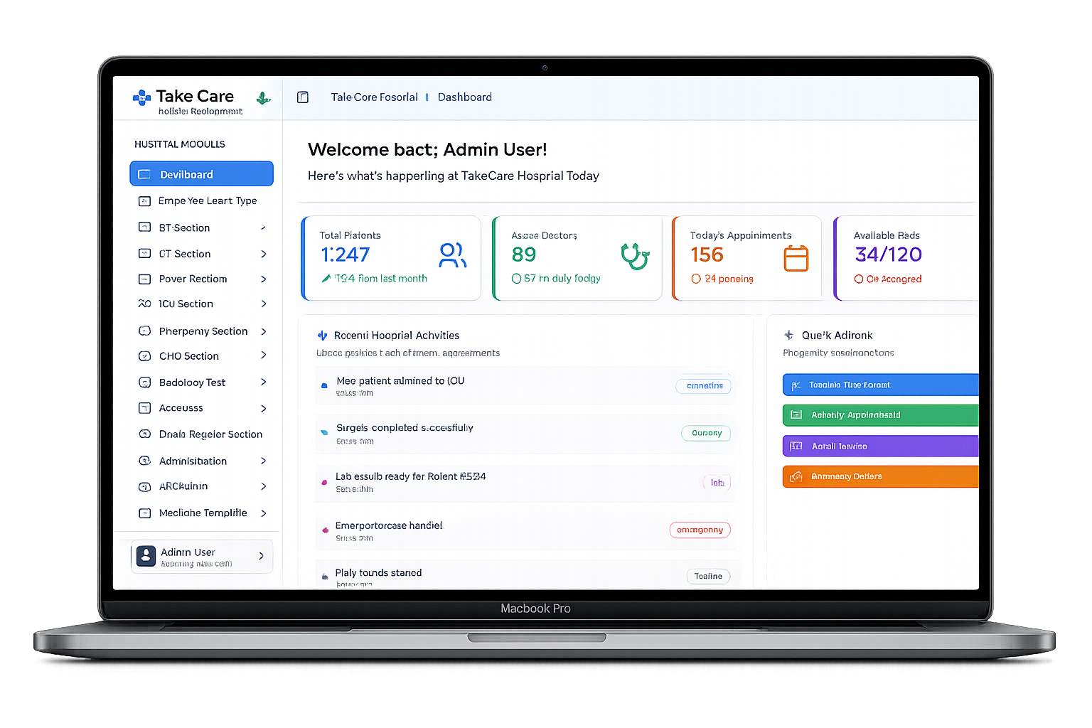 The implementation of the TAKE CARE Hospital Management System has significantly transformed our hospital operations. From patient registration to clinical workflows and reporting, the system has brought structure, transparency, and efficiency across departments.
