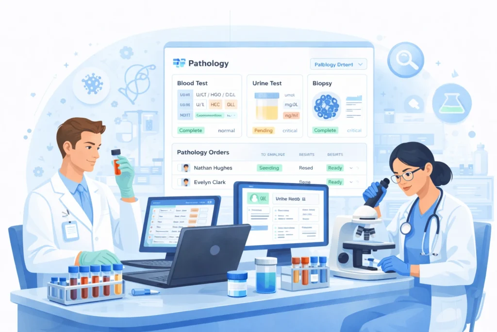 Each department connects through the ERP, reception, doctors, pathology, accounts, HR with shared real-time data to ensure faster operations and improved patient experience.
