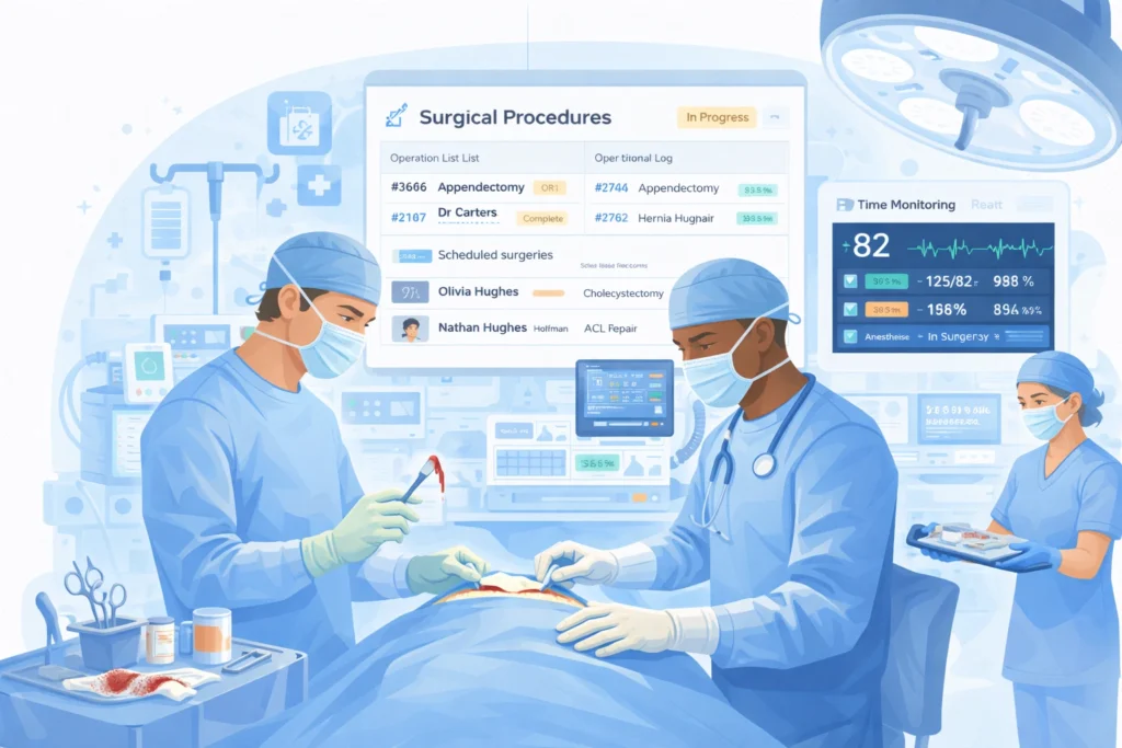 Automates surgery scheduling, OT resource allocation, and pre-op/post-op documentation.