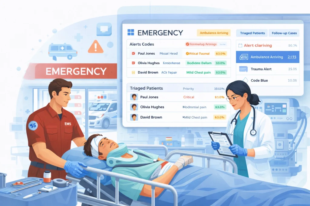 Coordinates emergency patient registration, triage, and critical care workflows.