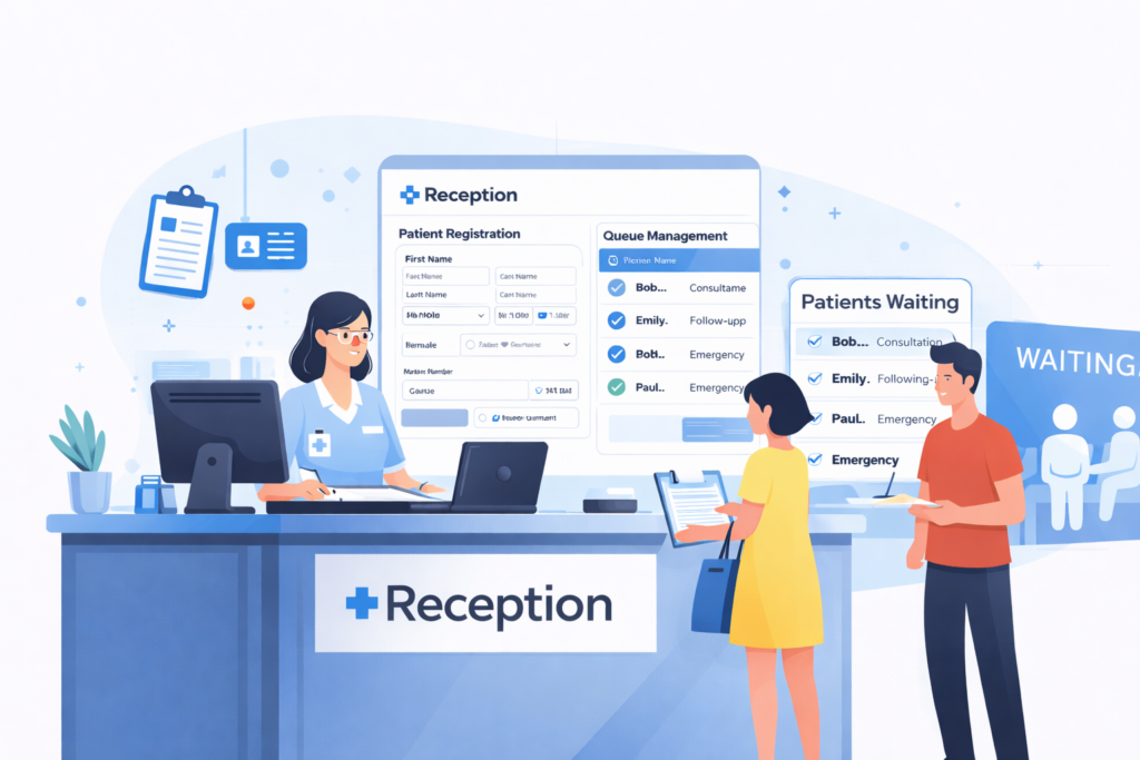 Streamlines patient registration, demographic entry, and queue management through a fast and