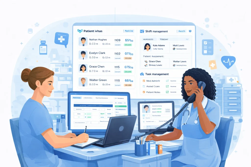 Allows nurses to manage vitals, medication schedules, and ward activities electronically.